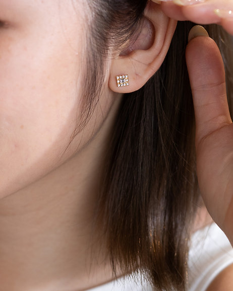 Elegant and refined, these dainty earrings feature baguette-cut diamonds at the centre, framed by a delicate halo of round brilliant diamonds. Set in warm 18K yellow gold, the clean lines of the baguette cut are beautifully contrasted with the soft sparkle of the surrounding stones. A modern classic with timeless appeal—perfect for everyday sophistication or a subtle evening accent.