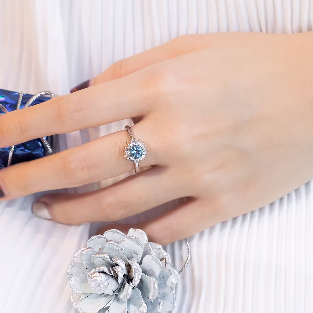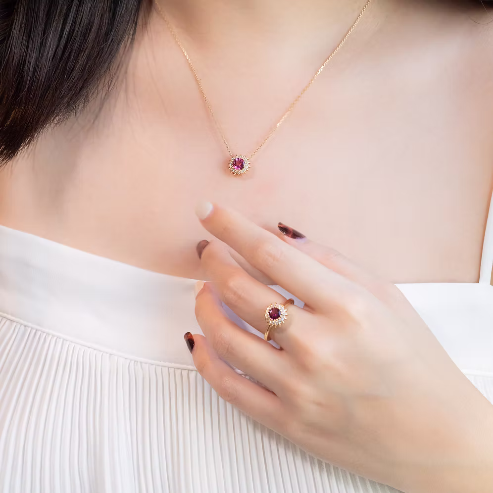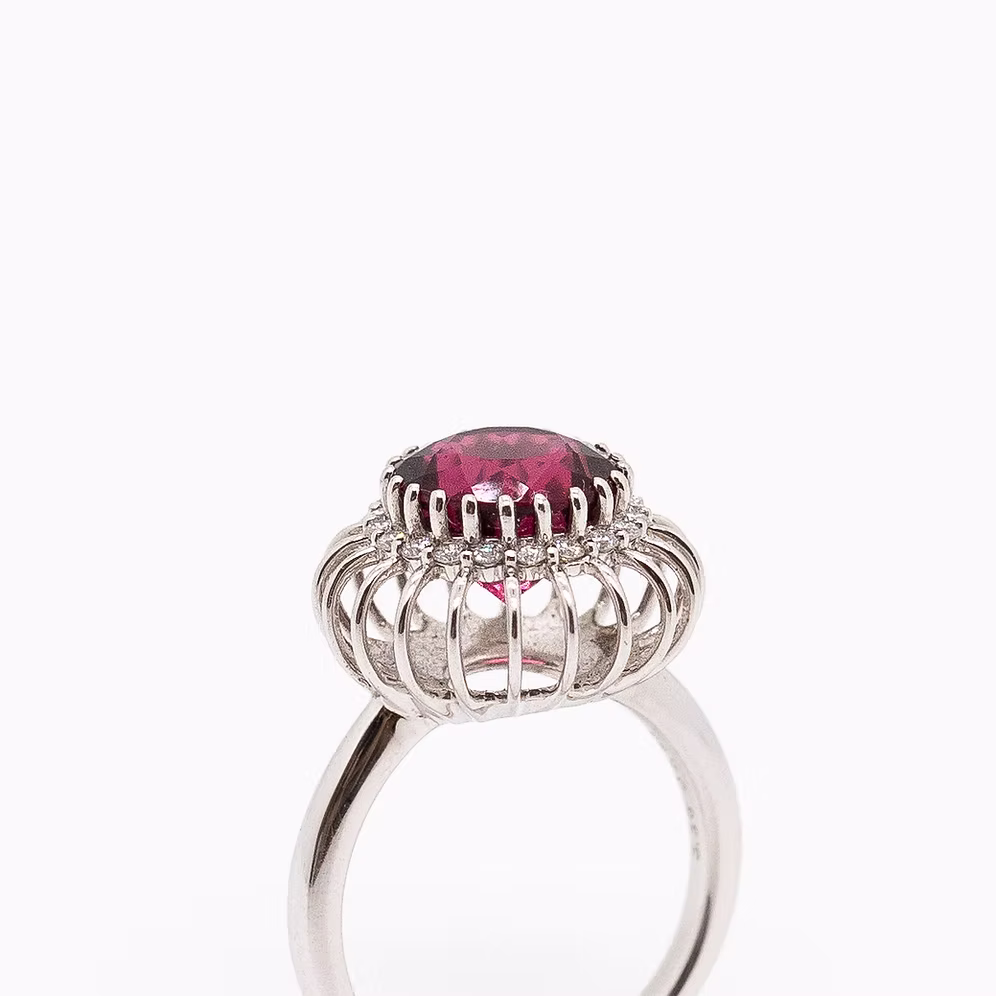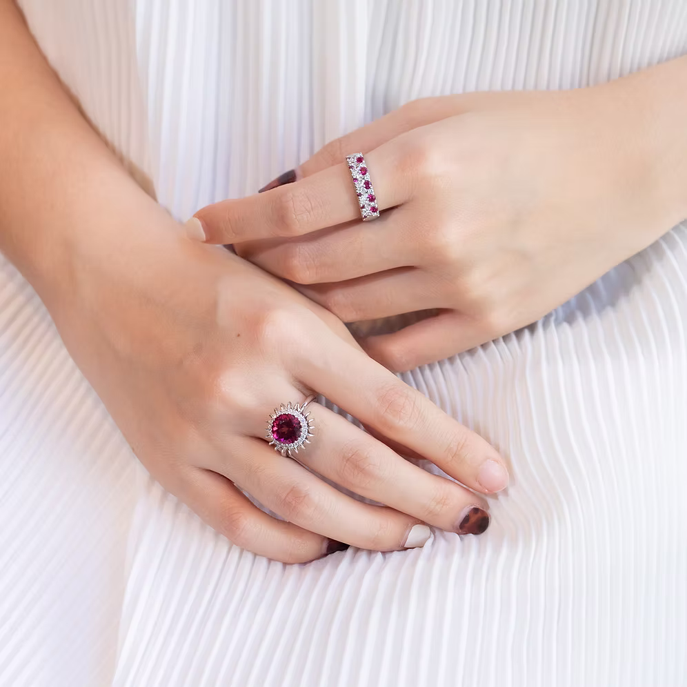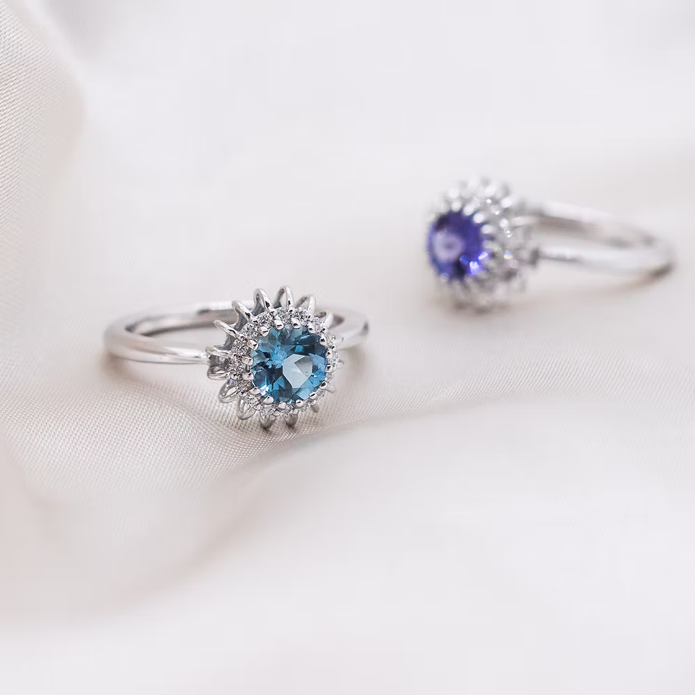 Our Balloon collection features round-cut brilliant centre stones with captivating coloured stones like aquamarine, tourmalines, garnets and tanzanites.