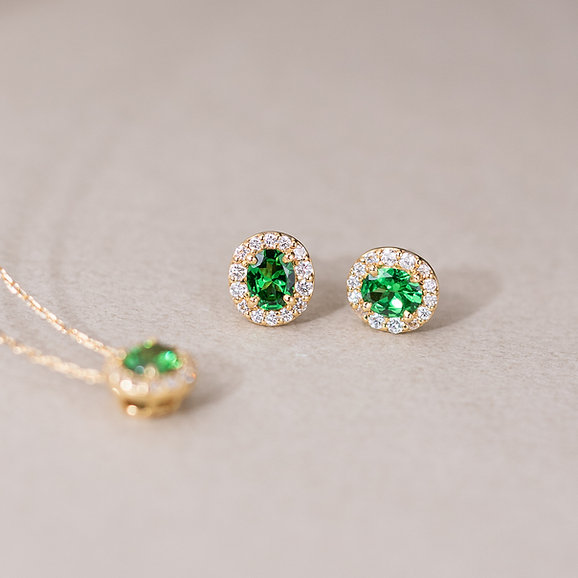 The Bon Bon earrings celebrate colour in its purest form. Featuring vivid oval-cut green garnets, the gemstones are carefully selected for their lively hue and natural brilliance, catching light with every subtle movement.
