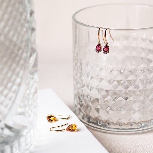 Crafted in solid 18-karat gold and platinum, the Emie Earring is a must-have coloured stone earring in your collection. The collection comes with pear-shaped stones like Amethyst, Garnet, Citrine and Blue Topaz.
