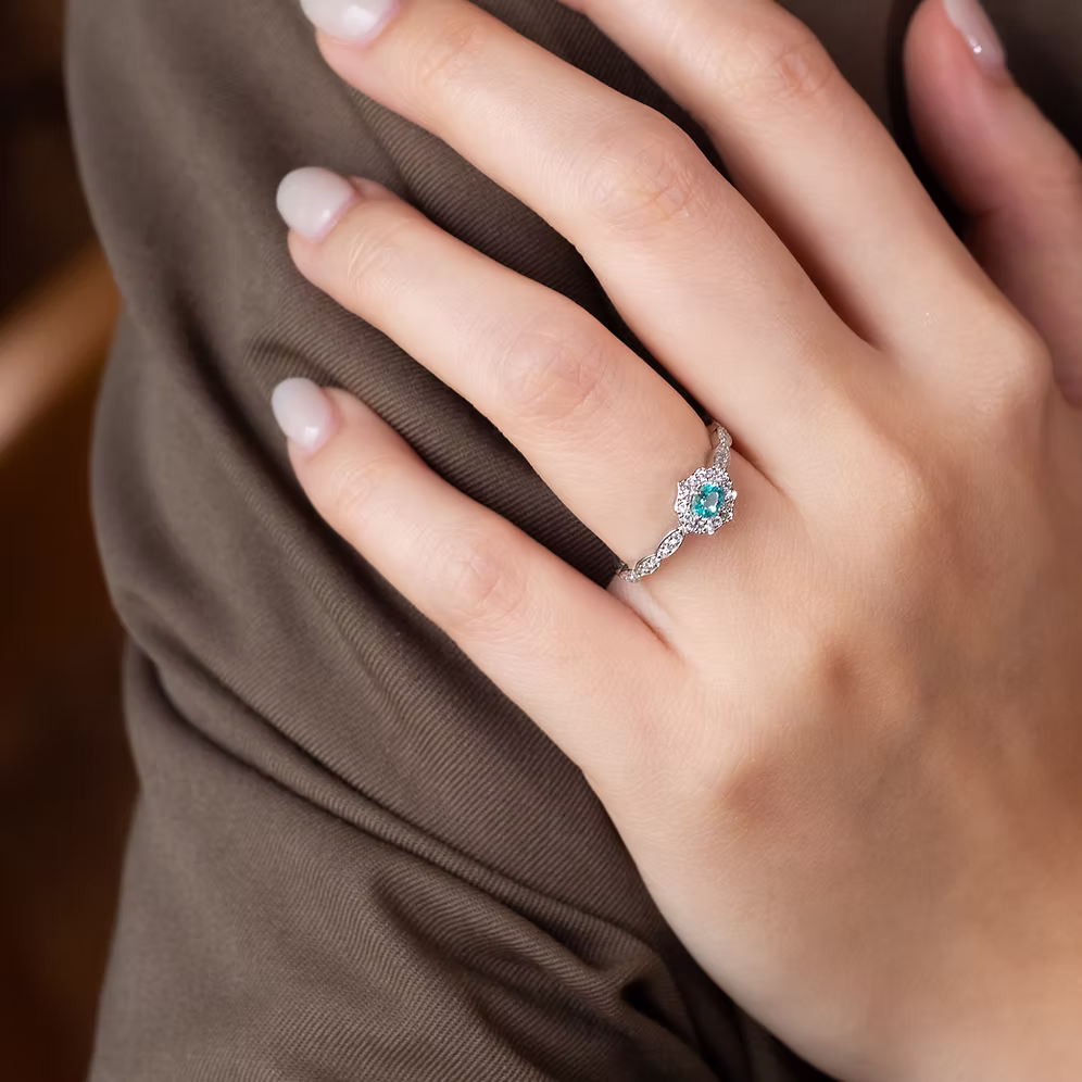 Main Stone: Paraiba Tourmaline, 0.17 ct