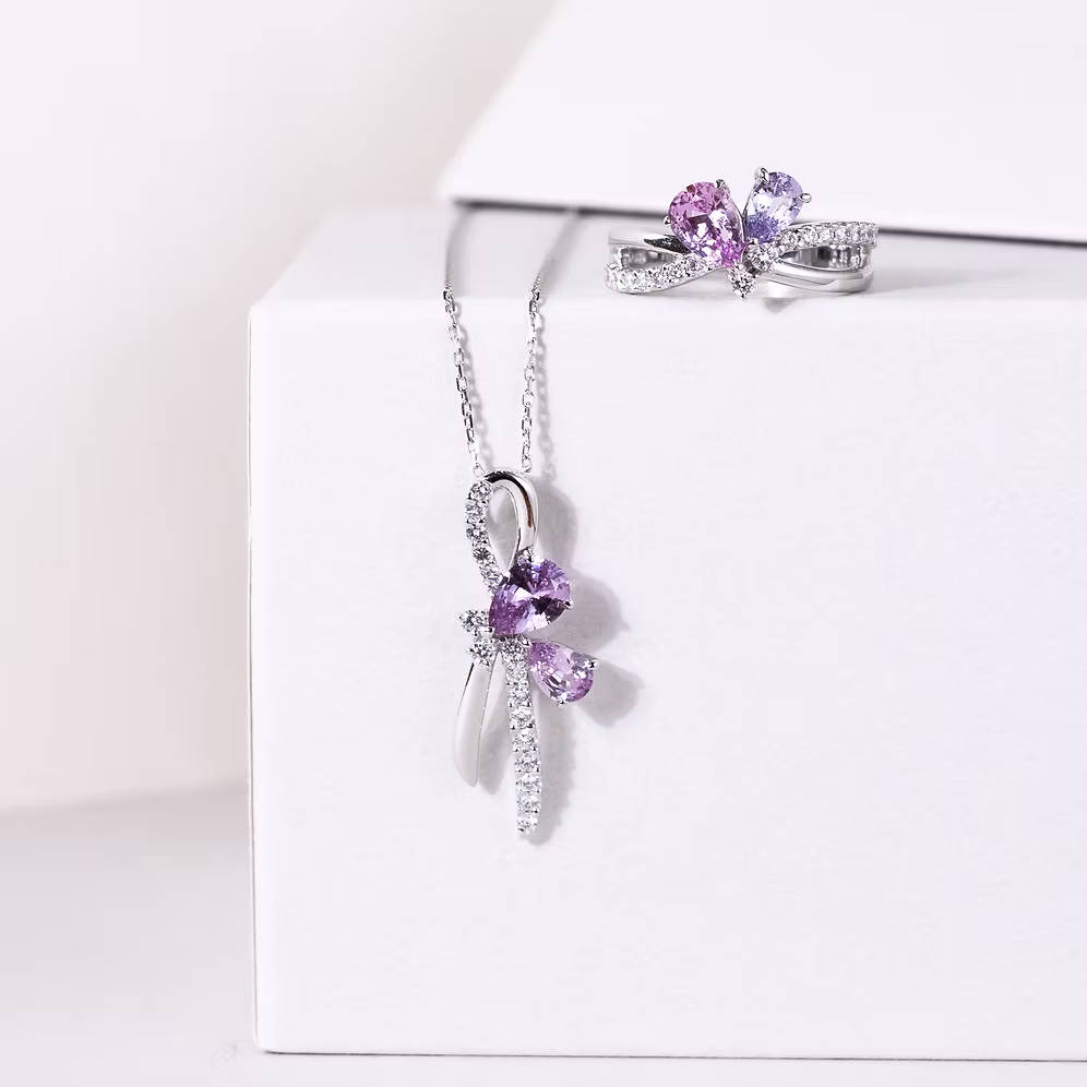 Featuring pink and purple pear-shaped sapphires that mirror the fluid curves of a ribbon, the collection adds a touch of colour, romance, and sophistication to any look.