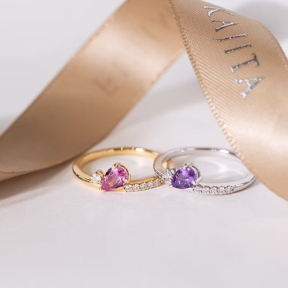 Featuring pink and purple pear-shaped sapphires that mirror the fluid curves of a ribbon, the collection adds a touch of colour, romance, and sophistication to any look.