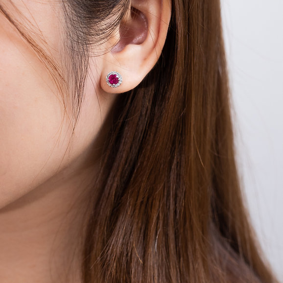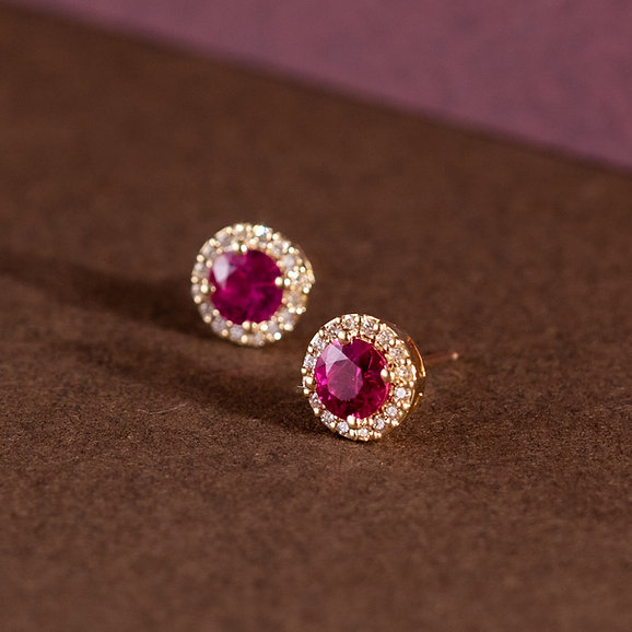 Ruby Halo Diamond Earrings