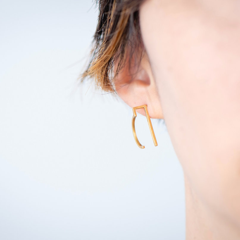 filum Signum collection – abstract single-sided earring. A series of jewelry that explores the flow of lines suspended in mid-air. Every piece is created with thoughtful strokes of the drawing hand and occasionally accented with pearls. The jewelry take on different forms along with the changing perspectives of the viewer. As every piece is one of a kind, the excitement lies in putting together your very own asymmetrical pair.