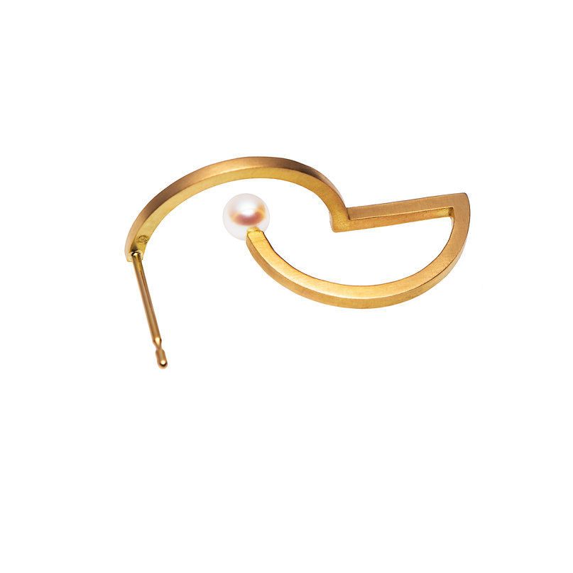 filum Signum collection – abstract single-sided earring. A series of jewelry that explores the flow of lines suspended in mid-air. Every piece is created with thoughtful strokes of the drawing hand and occasionally accented with pearls. The jewelry take on different forms along with the changing perspectives of the viewer. As every piece is one of a kind, the excitement lies in putting together your very own asymmetrical pair.