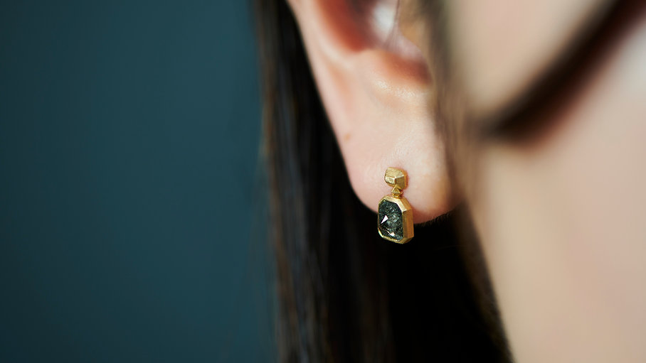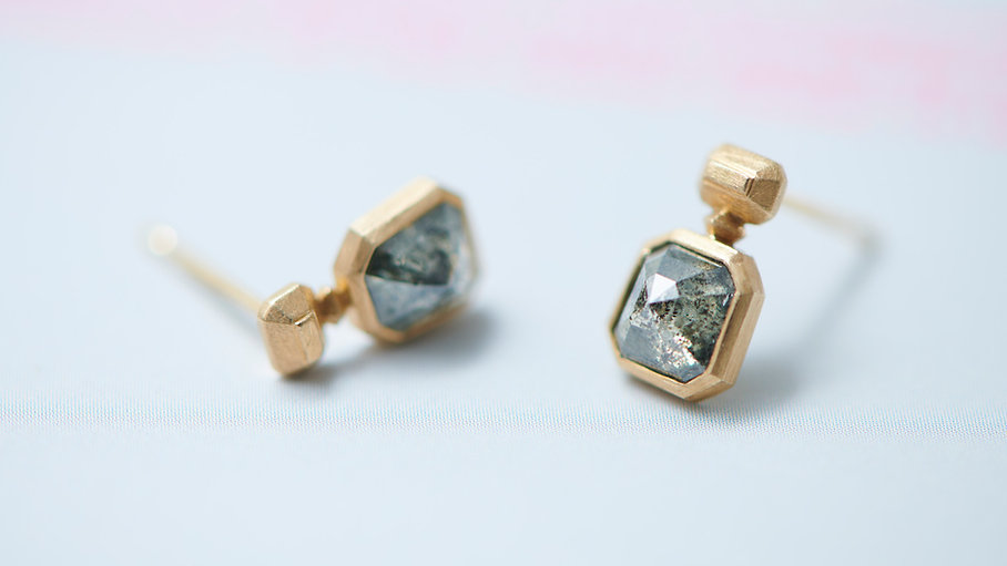 Smoke Trapezoid Salt & Pepper Diamond Earrings