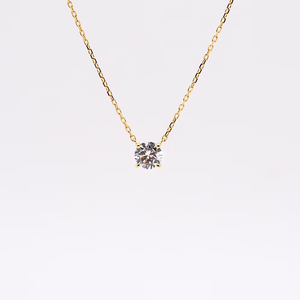 A brilliant round-cut polished diamond shines at the center of this delicate and refined 18k yellow gold pendant. Suspended like a single drop of light against the skin, layer this design with other necklaces for elevated elegance.