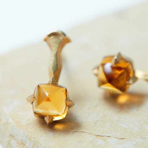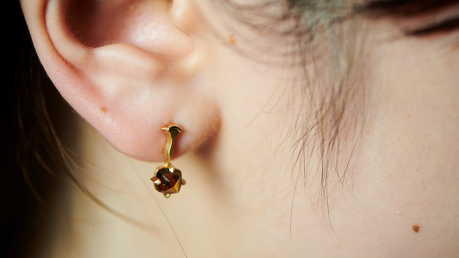 filum Tinge collection – coloured gemstones with a mellow luster. This series of sugarloaf cut tourmaline, as its name suggests, reminds one of a sugar cube slowly dissolving. Enveloped in matte gold, the gemstones’ colors and cuts are enhanced, adding a tinge of hue to your face.